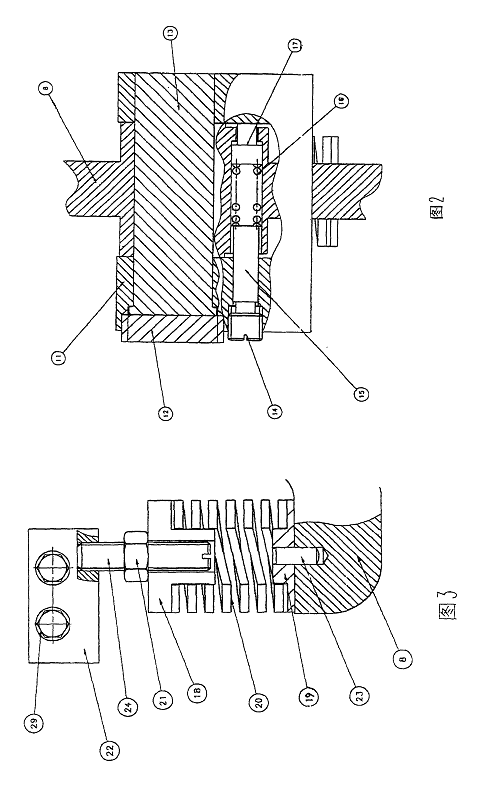制动器电磁铁1通过电磁铁安装螺钉28a和23b连接固定元件25外表面,且被固定元件25支撑。由图1可知制动器电磁铁1的拆卸方便。