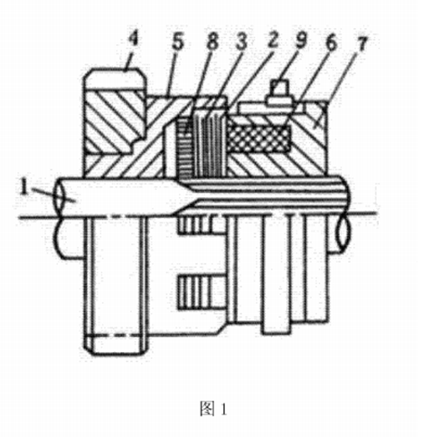 附图说明:图1是本发明的结构示意图。图中标记的含义:1主轴,2主动摩擦片,3从动摩擦片,4从动齿轮,5套筒,6线圈,7铁芯,8衔铁,9滑环。